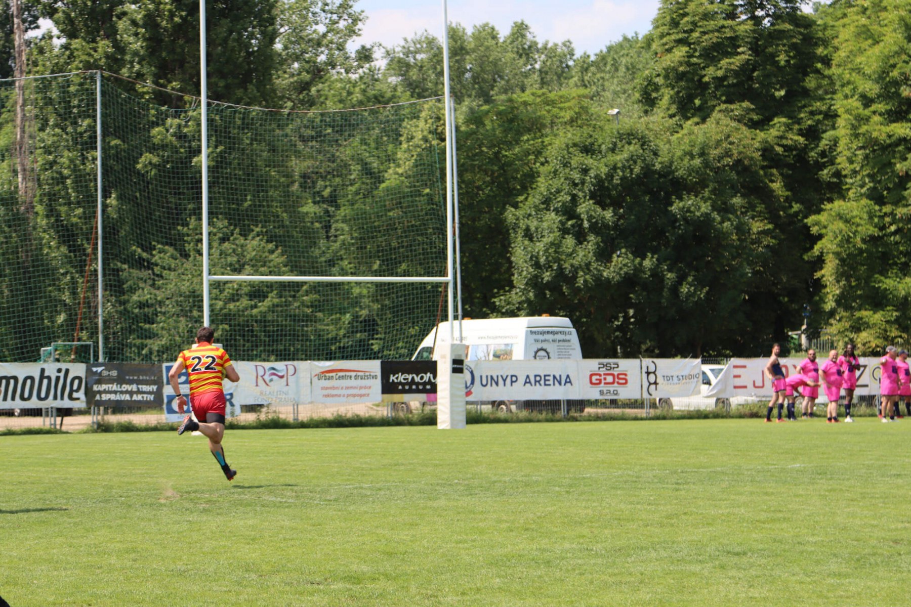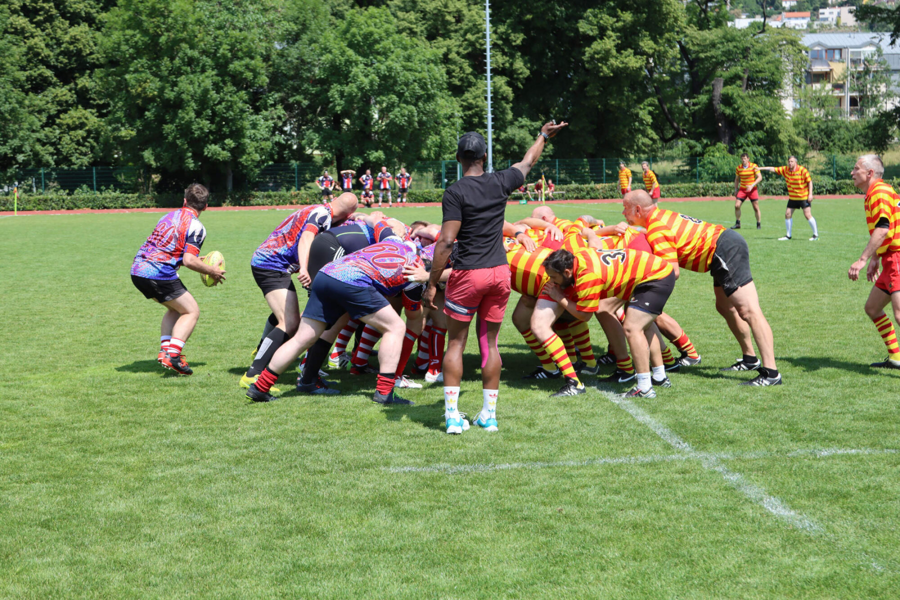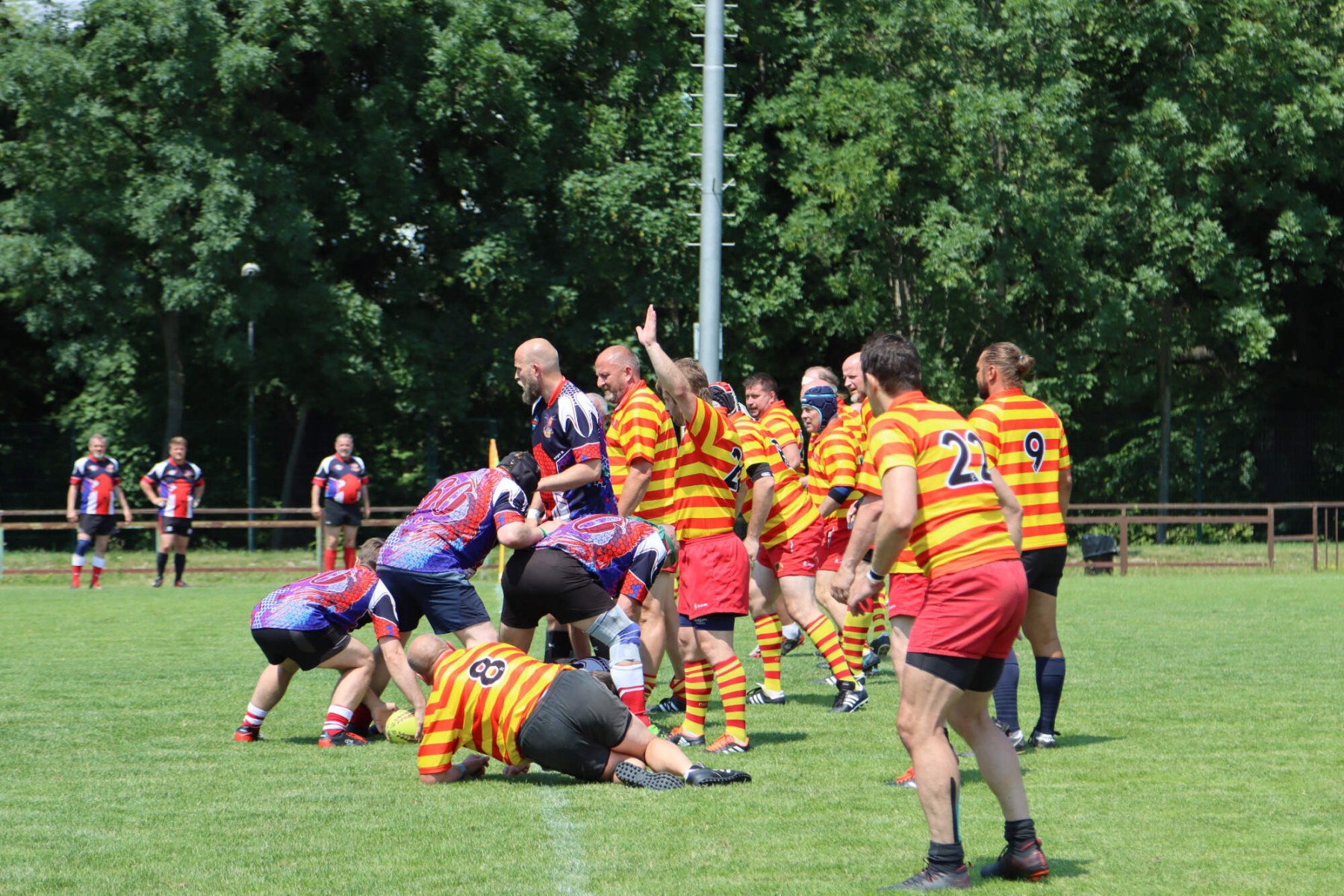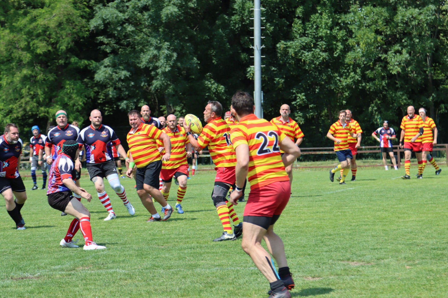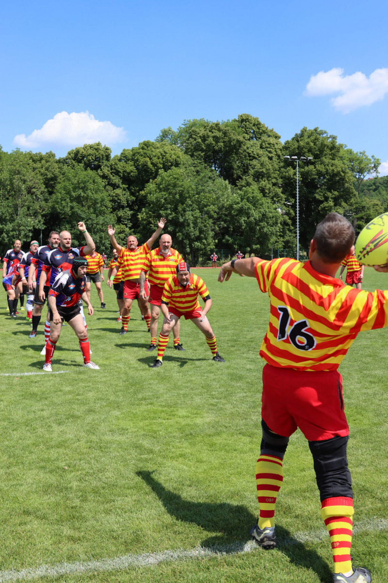 Turnaj o Staropražskou šunku začal v sobotu 11.6.2022 ráno výkopem zápasu skupiny B mezi Old Boys Praha a skotským teamem Centenary Peebles Oapees. OBP se představili důraznou obranou a skotské hráče zaměstnávali i rychlostí útoku (vynikal především Michal Jůna a Petr Nakládal). Výhra 15:5 byla nakonec zasloužená. Druhým soupeřem ve skupině OBP byl francouzský team Globe Trottar, který od začátku potvrzoval roli favorita turnaje a to především svojí sehraností, perfektními výkopy a důraznou obranou. Ve druhém poločasu sice OBP bojovali ale ke kýžené pětce to nakonec nevedlo a prohráli 15:0 a zahráli si tak až ve skupině o 5.-8. místo.