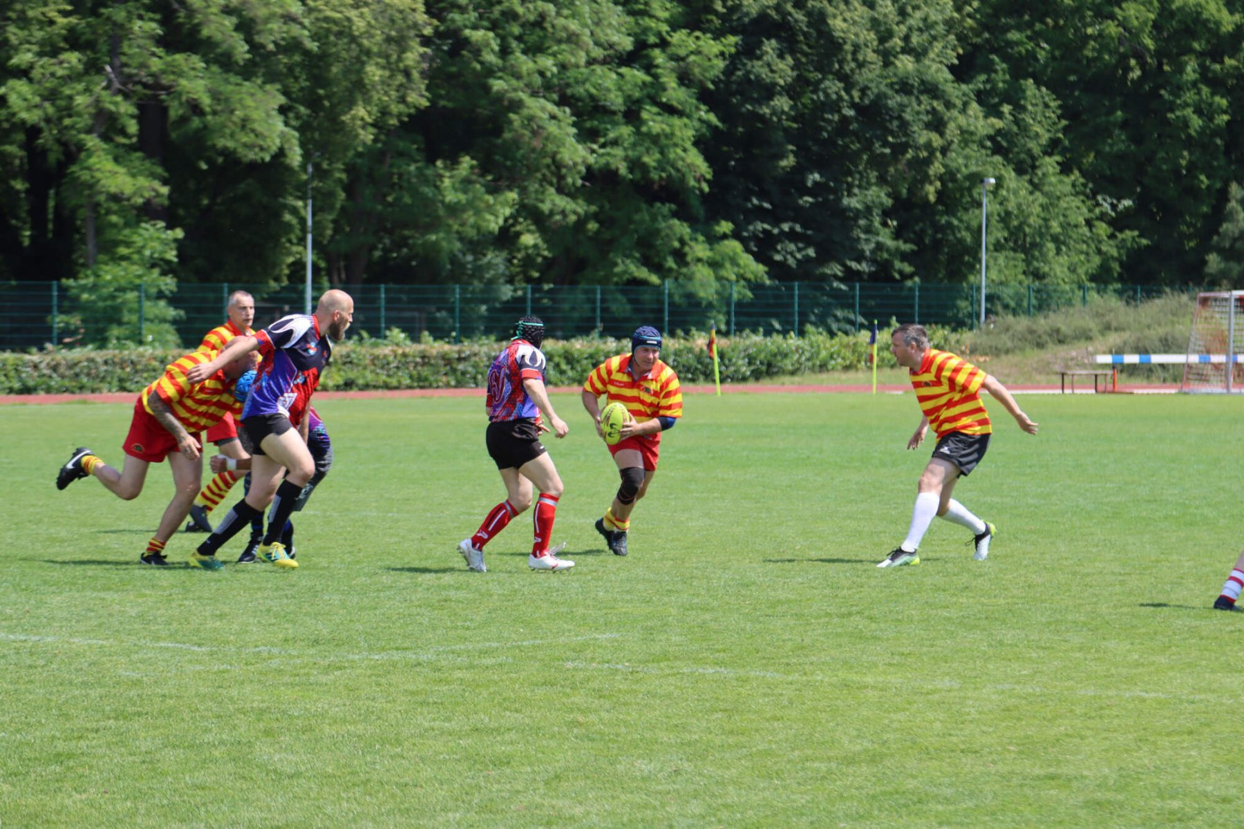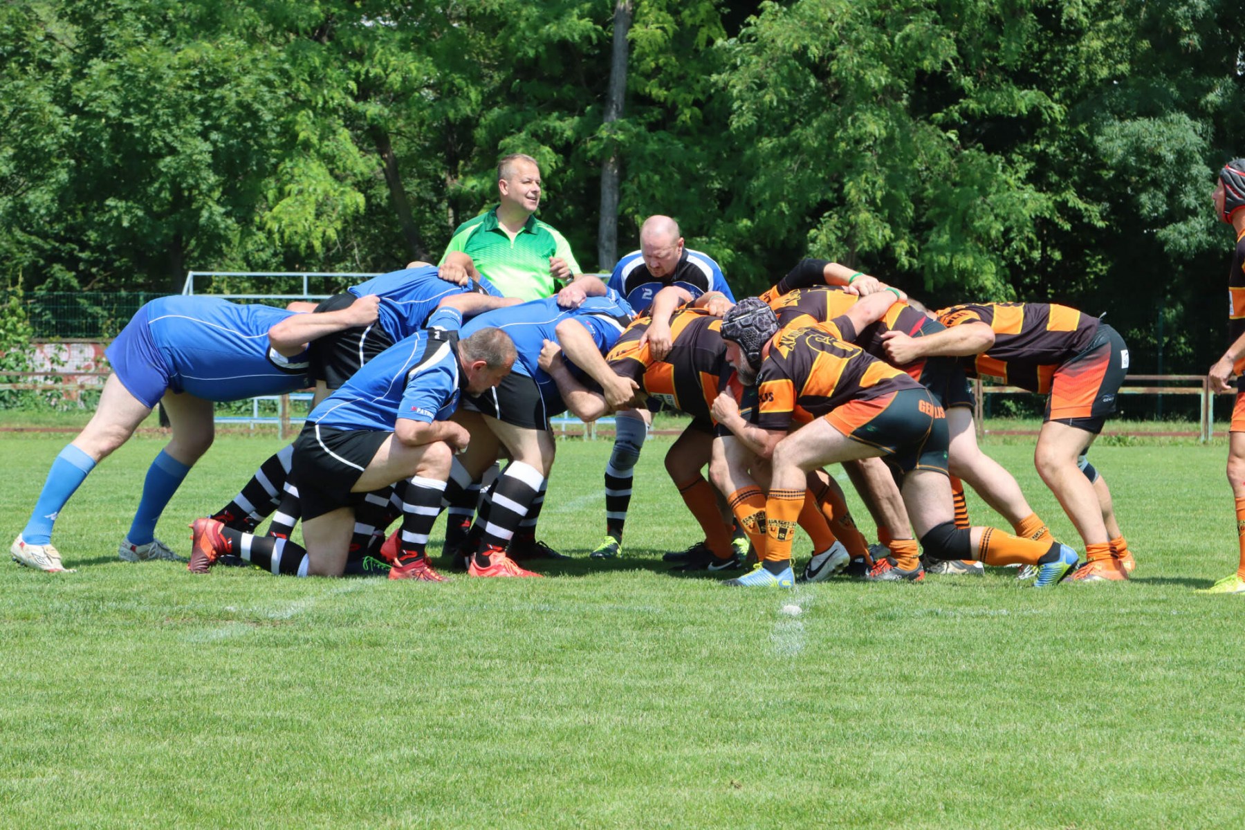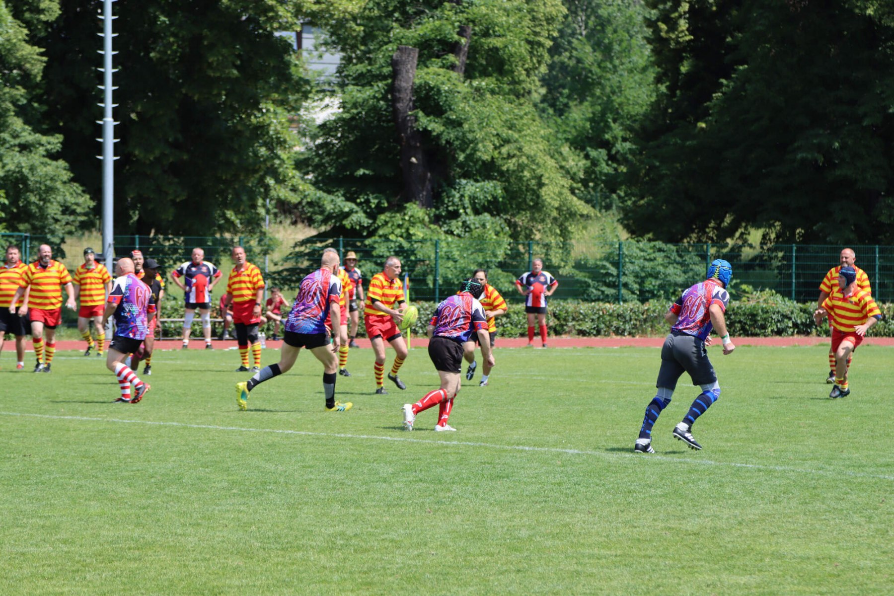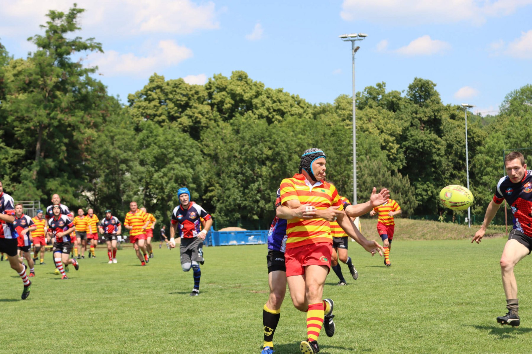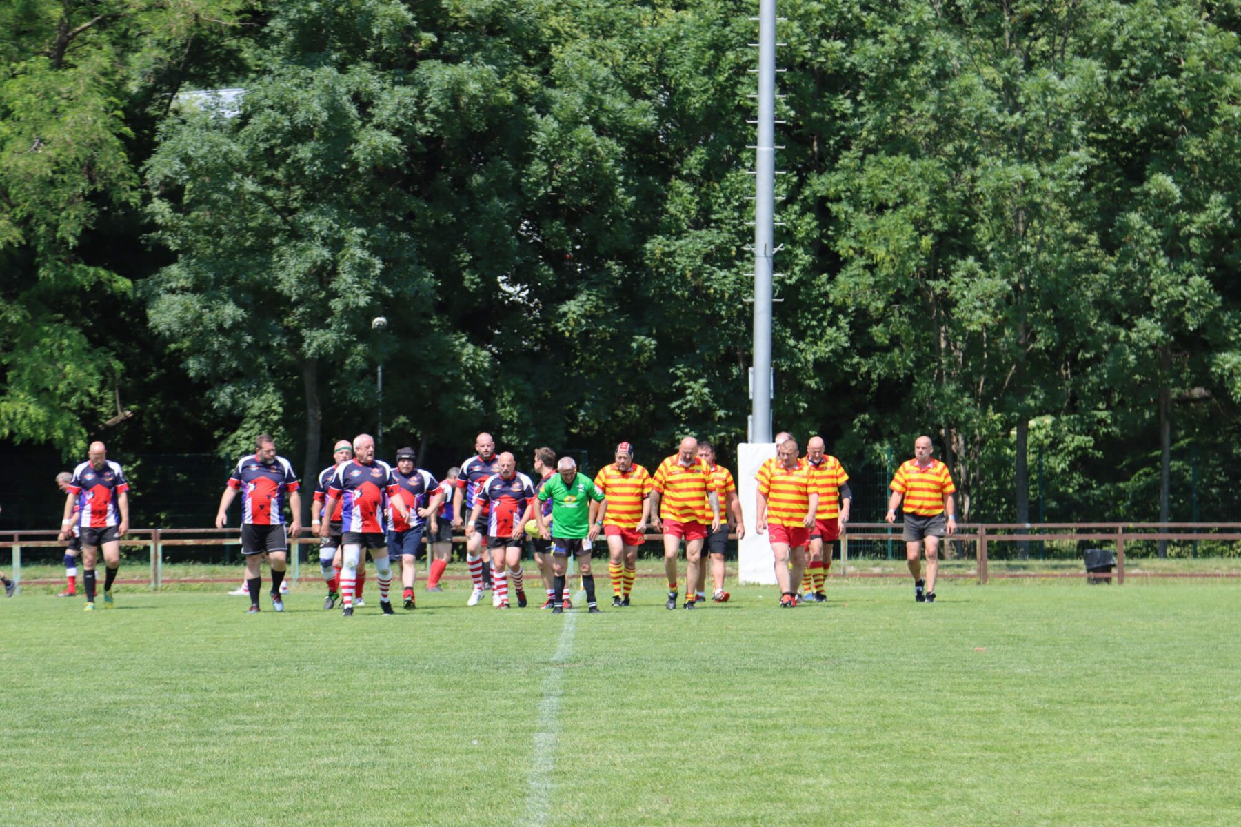 Turnaj o Staropražskou šunku začal v sobotu 11.6.2022 ráno výkopem zápasu skupiny B mezi Old Boys Praha a skotským teamem Centenary Peebles Oapees. OBP se představili důraznou obranou a skotské hráče zaměstnávali i rychlostí útoku (vynikal především Michal Jůna a Petr Nakládal). Výhra 15:5 byla nakonec zasloužená. Druhým soupeřem ve skupině OBP byl francouzský team Globe Trottar, který od začátku potvrzoval roli favorita turnaje a to především svojí sehraností, perfektními výkopy a důraznou obranou. Ve druhém poločasu sice OBP bojovali ale ke kýžené pětce to nakonec nevedlo a prohráli 15:0 a zahráli si tak až ve skupině o 5.-8. místo.