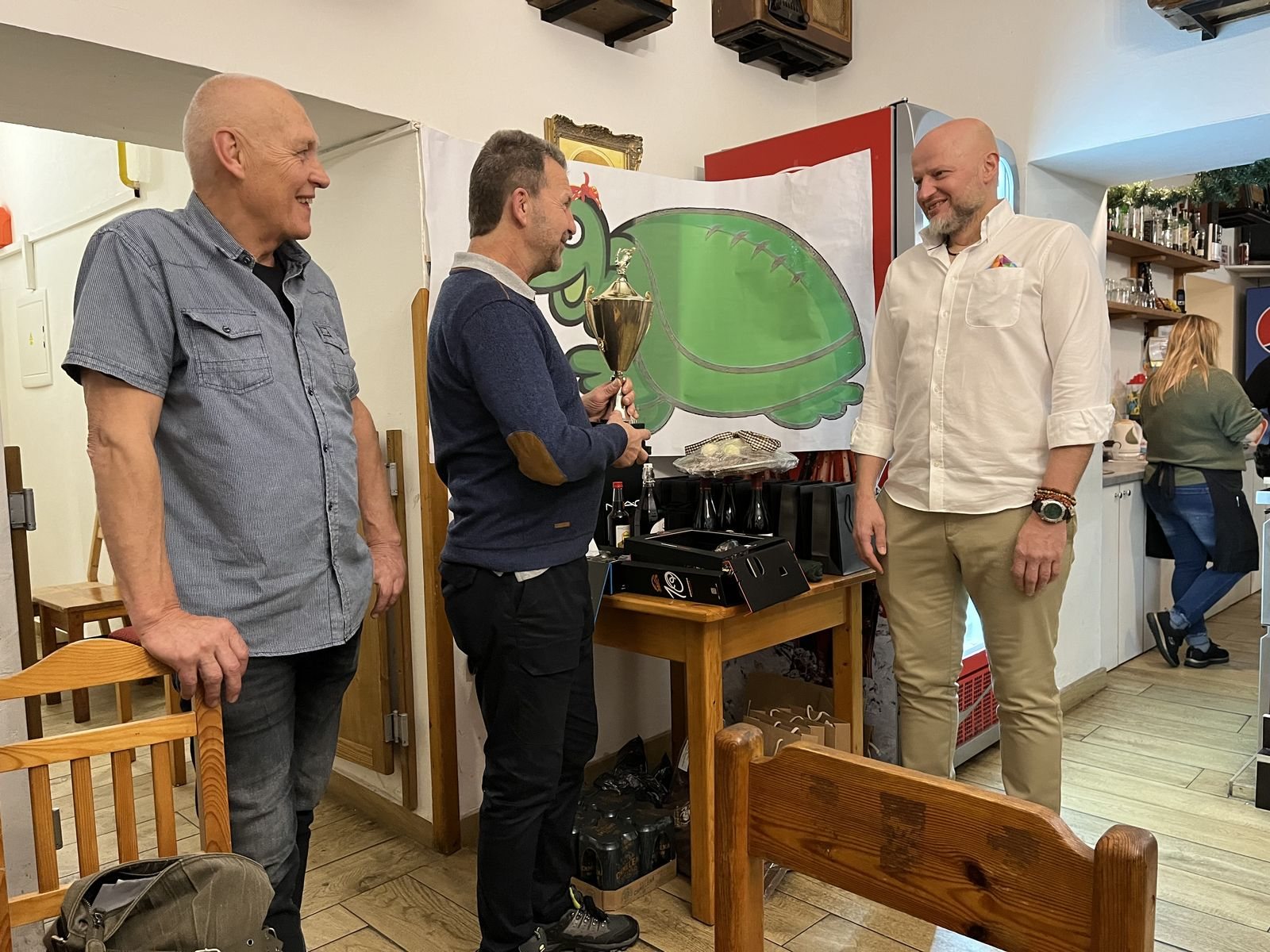 Po další hodině večírku, kdy se hodně zpívalo (Gumba si dal opět doprovod k Jožinovi z bažin) a někteří se přidali i do tance, došlo i na předání poháru pro nejlepšího hráče OBP v sezóně 2023. Pohár předával prezident Karel Zeiner, kapitán Vláda Pošík a aktuální držitel poháru Tomáš Vémola, který se celý rok s pohárem natolik těšil, že zapomněl na svoji povinost doplnit pohár svými iniciálami a tak novému držiteli předal i novou povinost to doplnit i za rok 2022.