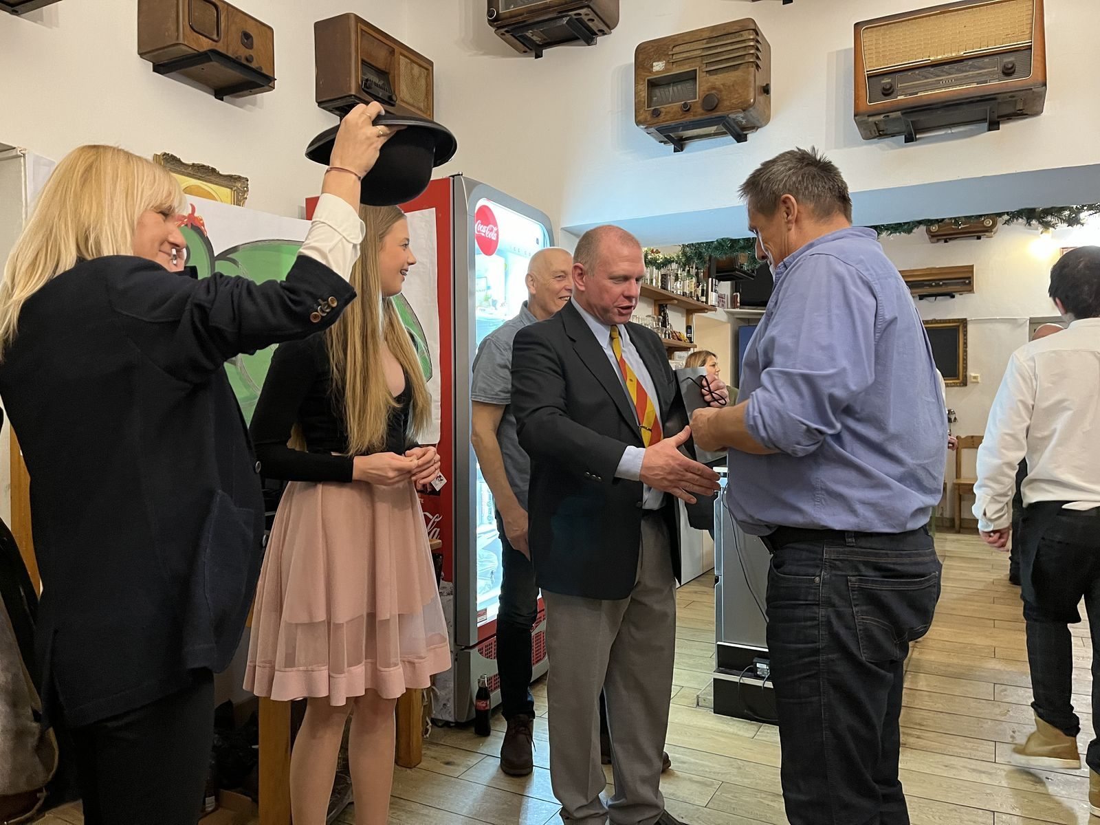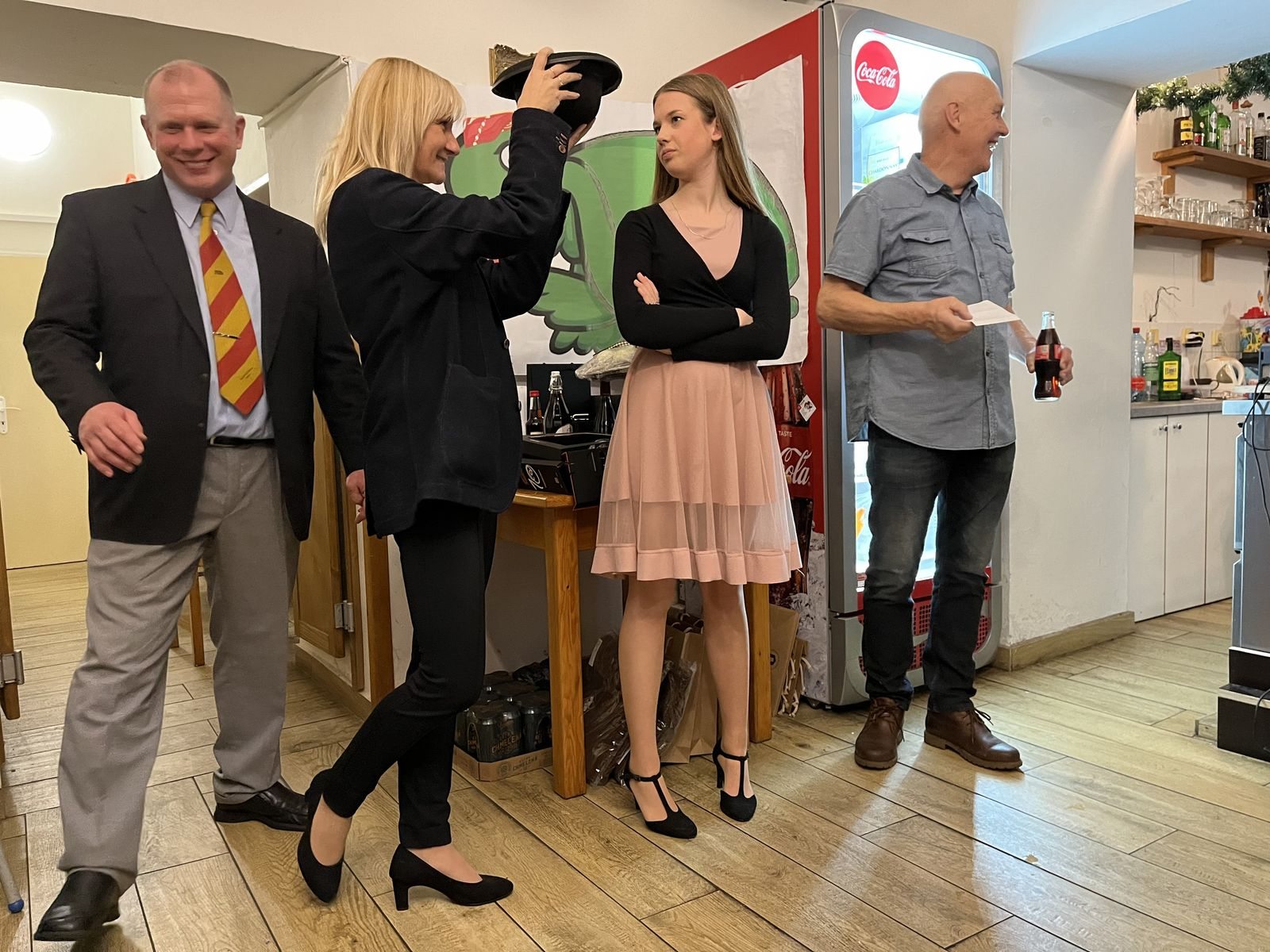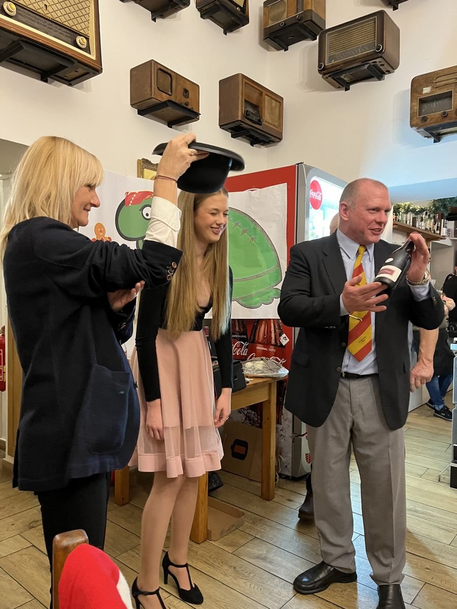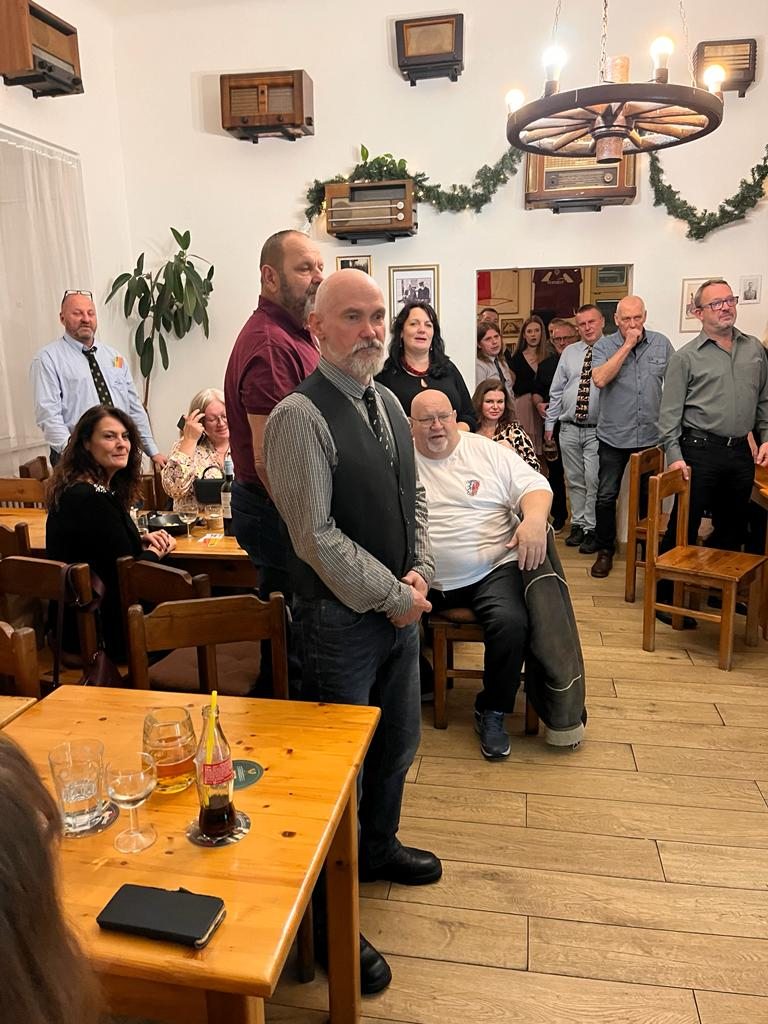 Hlavní proslov, který formálně otevírá večer a raut, pronesl prezident Karel Zeiner a jak už se na prezidenta sluší a patří, byl shrnující, káravý a zároveň i laskavý. Během proslovu Karel připomněl všechny důležité události roku 2023, kriticky probral výkony OBP a naznačil plány na rok 2024. Těšíme se tak na jarní program se soustředěním na Šumavě a v Úžicích, zájezdem do Hamburku a snad konečně vyjde ta Gruzie na podzim. Následné otevření rautu prezidentem už byla jen formalita, kvůli lákavému sortimentu na rautových stolech a nedočkavosti členů OBP se otevřel už hodinu před tím.